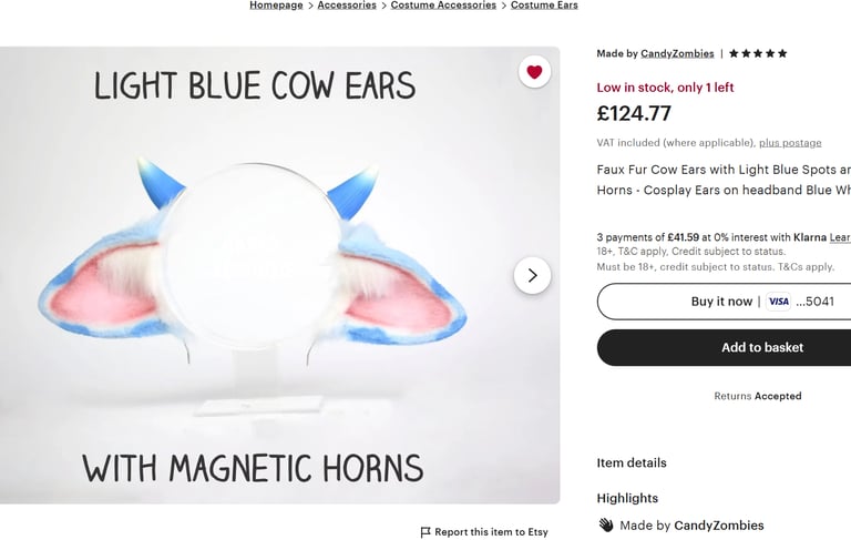 Blue Cow Ears - CandyZombies on Etsy